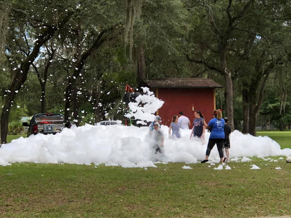 Our foam cannon is a machine that uses water, air, and a special foam solution to create large volumes of fluffy, non-toxic foam for entertainment at events